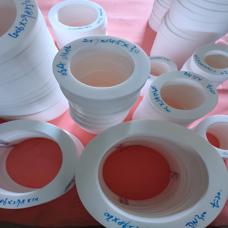四氟墊片國(guó)外又叫PTFE墊片或Teflon(鐵氟龍)墊片.由聚四氟乙烯棒、 管、板經(jīng)機(jī)械車削或裁切而成的平墊片、V形墊片、活塞環(huán)、球閥墊圈等具有耐腐蝕、抗老化和不導(dǎo)電等良好特性。1)原材料準(zhǔn)備;配料:
